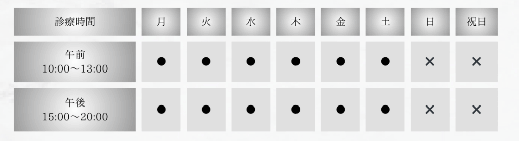 電話受付時間:各日9:20~診療時間内